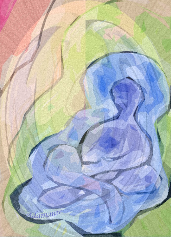 Comme lovée dans un sofa elle s’en est allée dans le courant sur l’onde calme elle a déposé son corps au cœur même des ronds dans l’eau elle flotte et se laisse transporter tel le bébé qui grandit en elle.