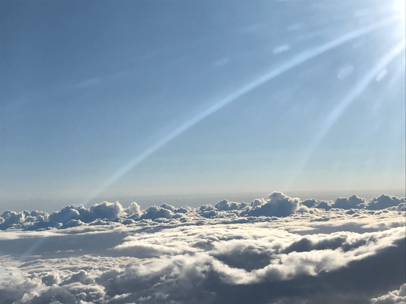 être au dessus des nuages et les regarder à travers un hublot donne aux mots une étrange liberté.