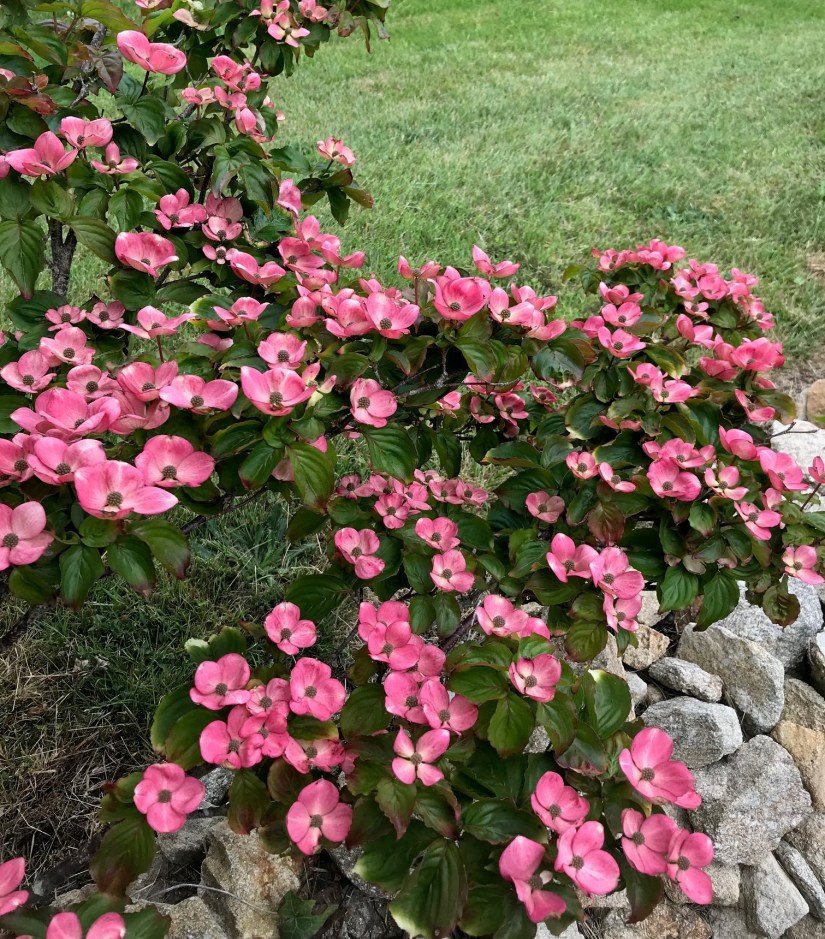 Cornouiller du Japon, ses fleurs se creusent en p’tite tasse de thé, d’un rose bonbon, on en mangerait ,-)
