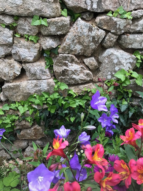 Marie, quand les murs fleurissent le lierre accompagne le bavardage multicolore des fleurs.