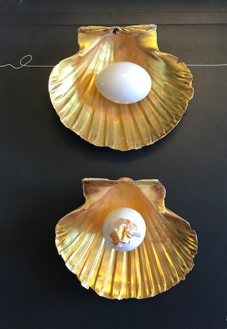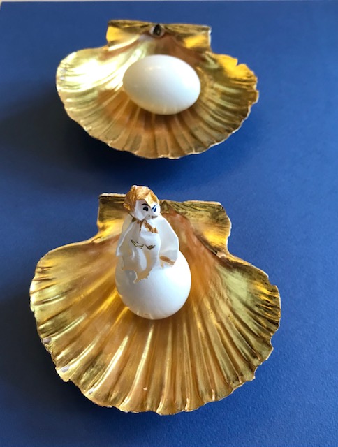 Un œuf de pigeon, une coquille saint Jacques, du papier de soie froissé , un peu de peinture dorée et le tour et joué , une Vénus-étoile brille dans mon intérieur …