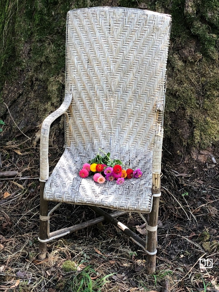 Tendresse pour ces vieux rotins qui nous tendent leurs bras et que l’on veut garder encore un peu; tant de confidences, de chuchotements et d’éclats de rires sont passés par là qu’ils parsèment le jardin de souvenirs impérissables: un chapeau de paille, un bouquet champêtre et le charme s’installe !