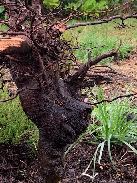 alors créons le mythe de la Gorgone terrienne , ses magnifiques cheveux sont devenus racines et radicelles, ses yeux sont presque inexistants ainsi son regard ne pourra pétrifier personne, son doux sourire désabusé nous dit que l’Homme continue toujours à faire souffrir les arbres , son petit nez en trompette essaie de respirer la musique du temps, ce temps qui lentement fait son œuvre