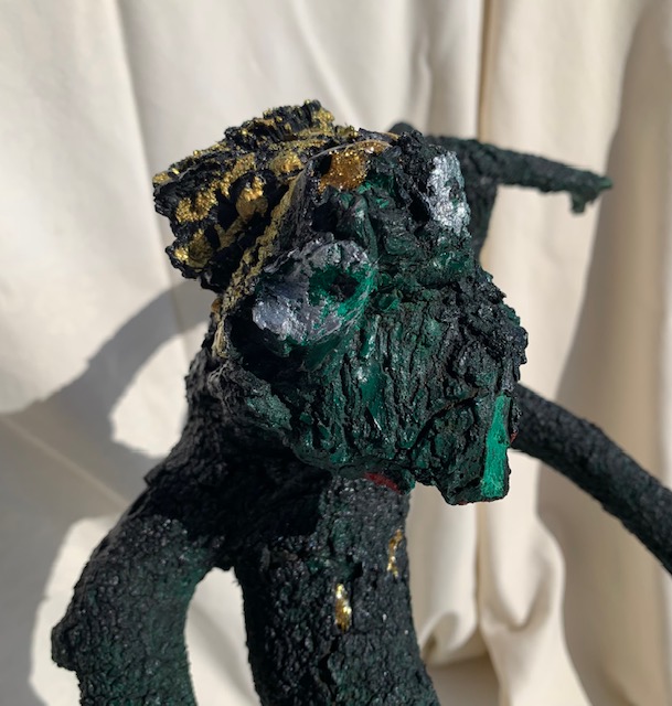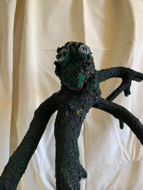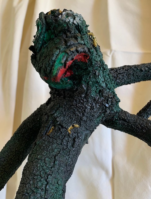 Un bois mort à qui tu prêtes vie, noir, comme la terre d’Afrique, sorcier de là-bas, au masque de zombie, dans chaque tribu, le sien….