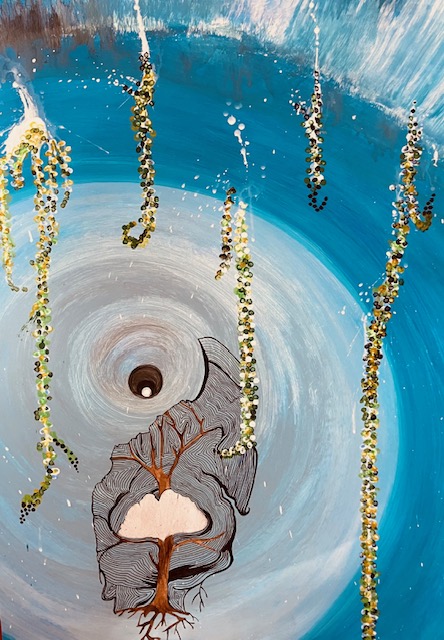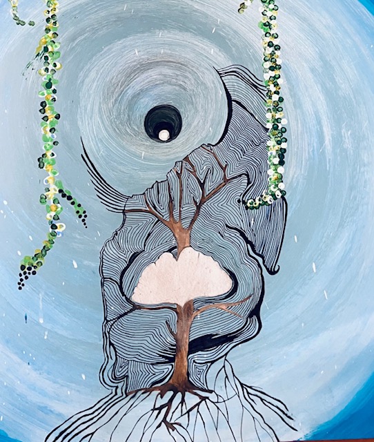 Un coup de cœur pour cet arbre qui à mon avis doit abriter en secret ton oiseau… ensemble, ils s’envolent en chantant la paix, l’amour dans des tourbillons d’azur