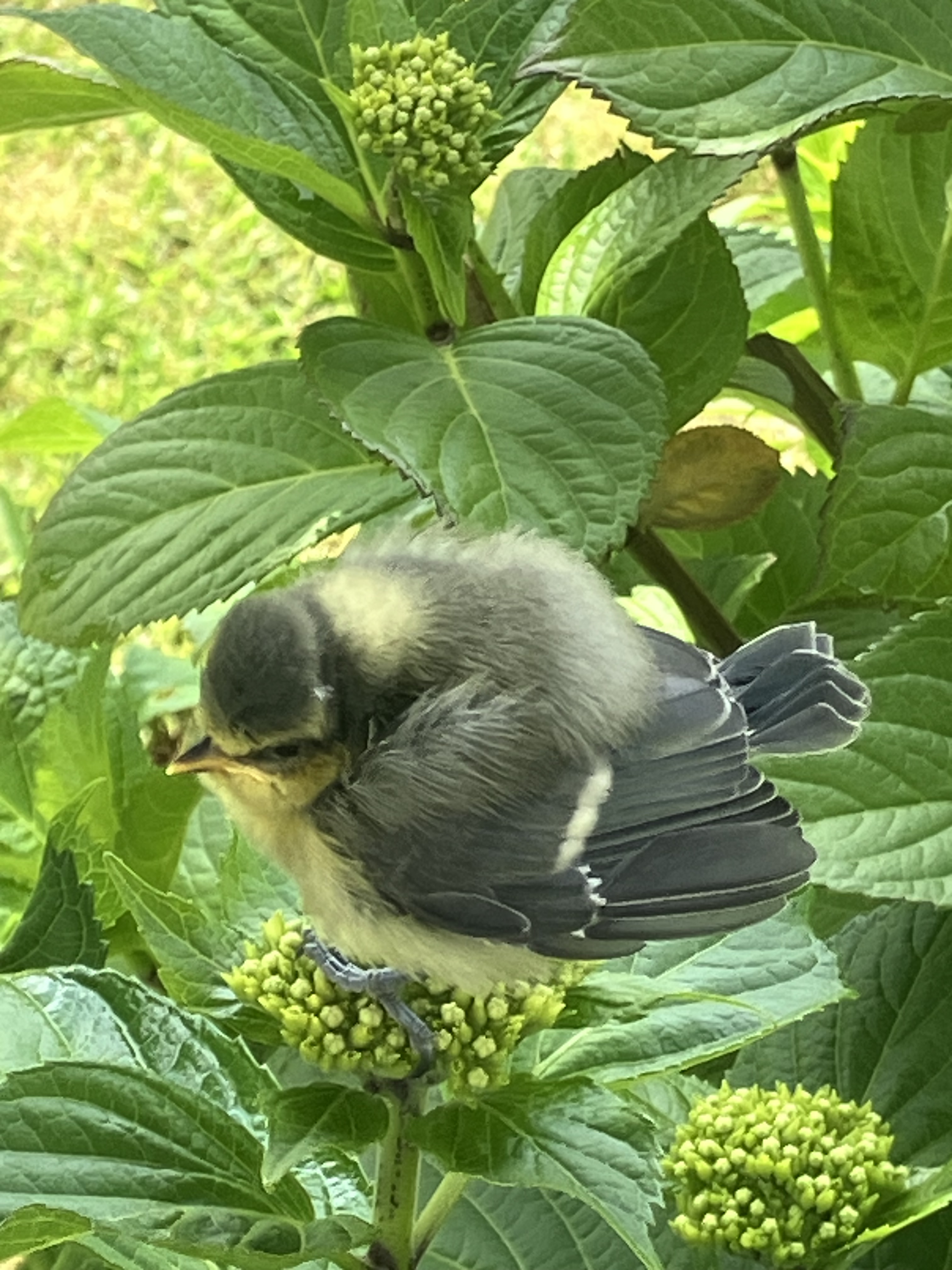 Je l’ai vu, non pas voler mais sauter en agitant son duvet ses poils ses plumes. Le grand saut de l’aventure … Et plouf , il s’est posé sur une fleur d’hortensia en bouton !