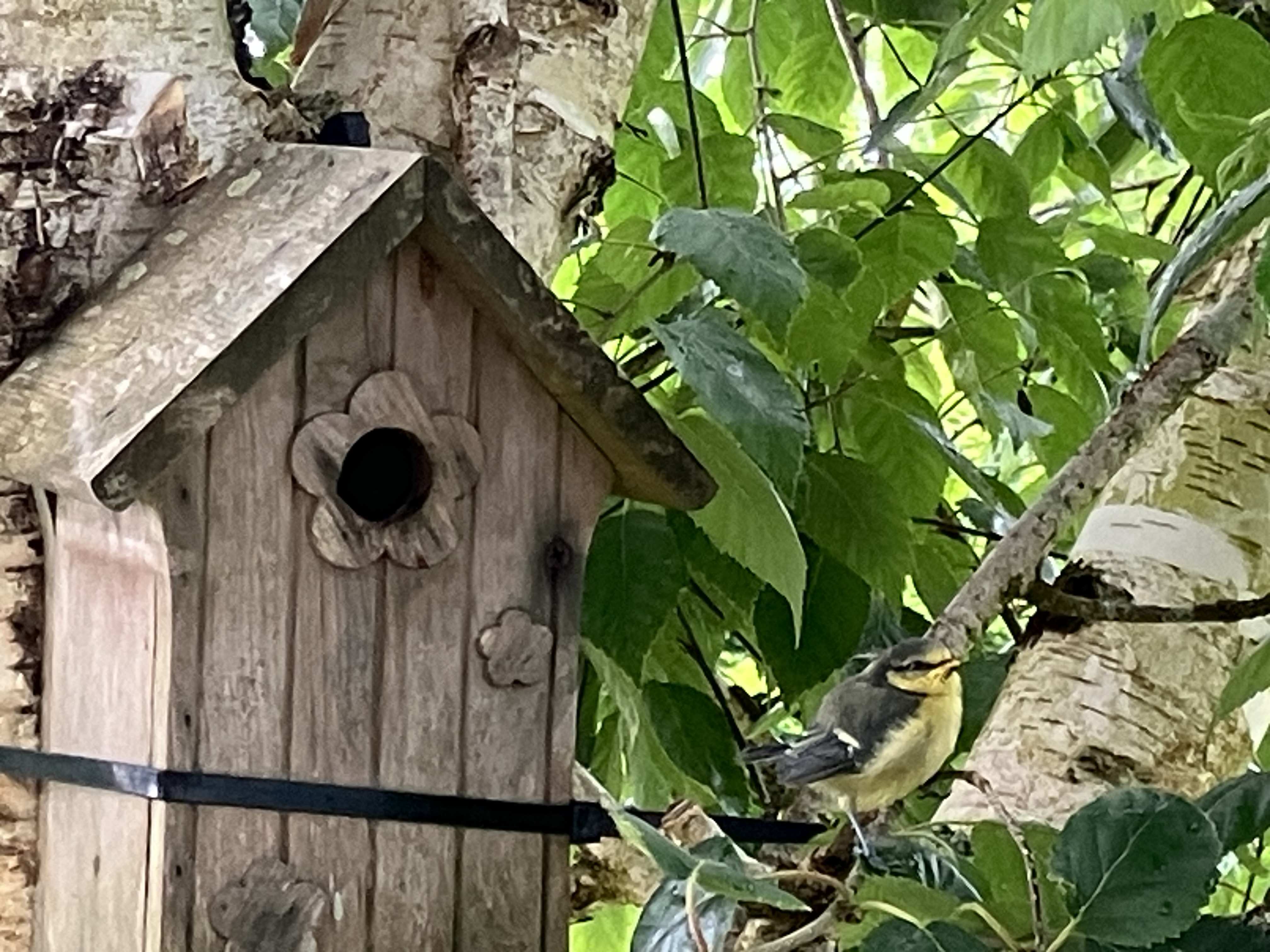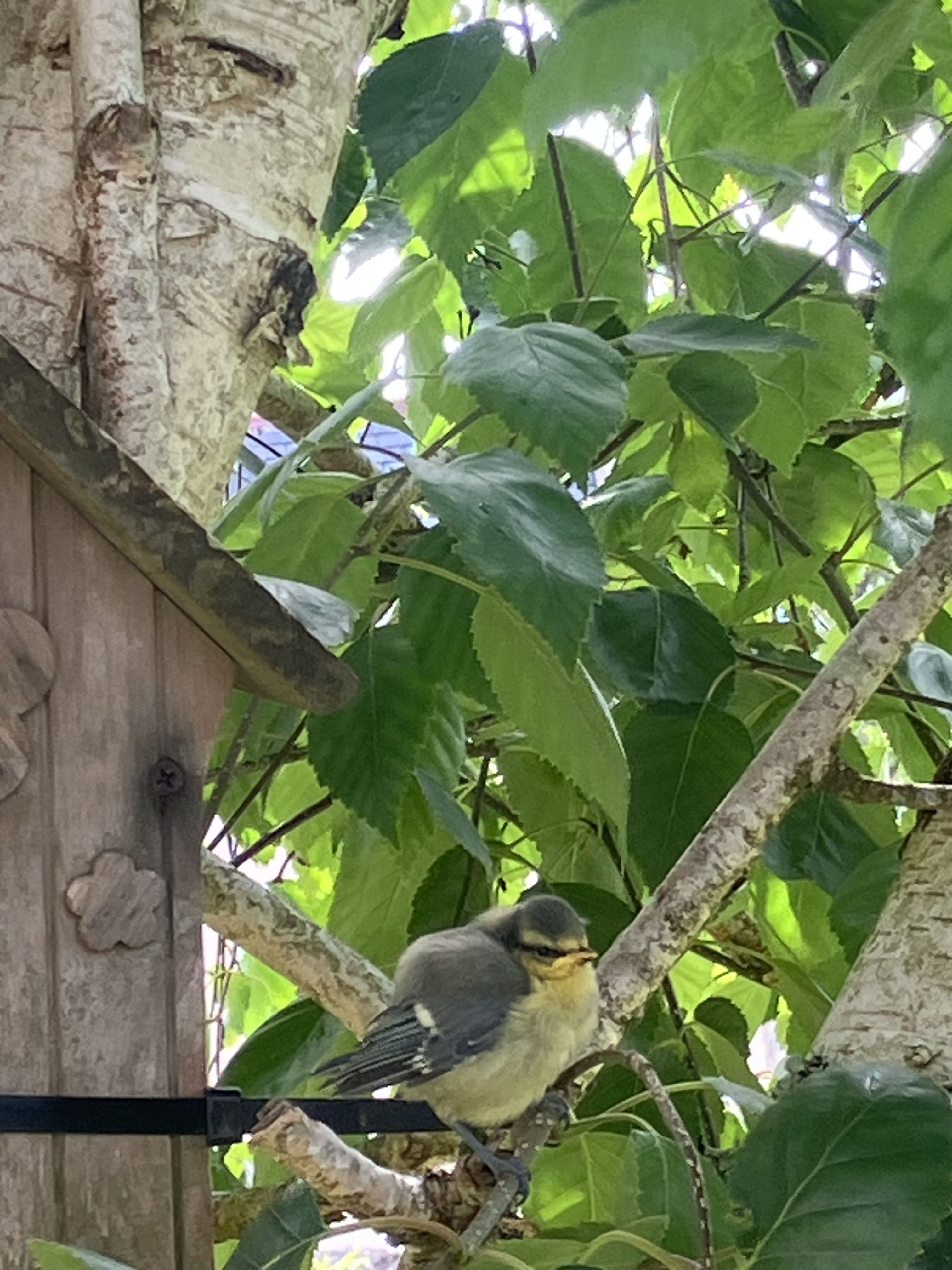 Et lui il s’est arrêté sur une petite branche, derniers pépiements en attente d’encouragement, il a peur, voler de ses propres ailes, pas de mode d’emploi ! Il faut se lancer tout seul!